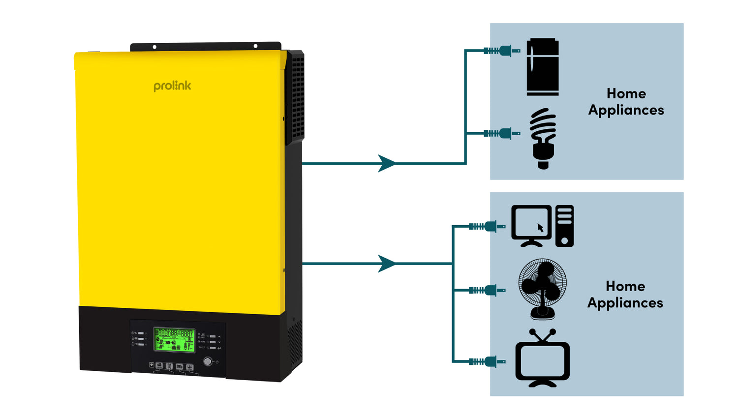 When utility power is unavailable, Prolink empowers you to be your own electricity provider. With Prolink's reliable off-grid inverter to convert the battery power for electrical appliances, you are equipped with a self-sufficient power supply system, independent from conventional utility grid.
